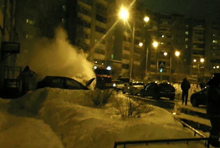 В Тюмени во дворе жилого дома вспыхнула машина. ФОТО, ВИДЕО