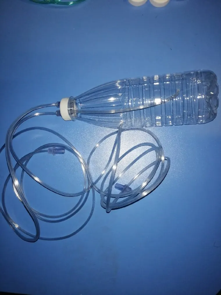 После выписки Михаил посмотрел в интернете устройство кислородного аппарата и изготовил десять самодельных из обычных пластиковых бутылок. «Медсестры с благодарностью приняли мой скромный подарок, теперь используют», — добавил Михаил.