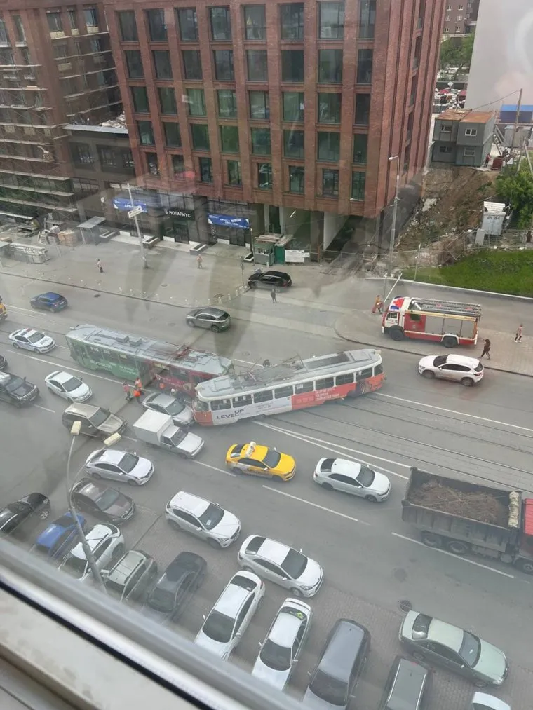 Трамвай сошел с рельсов в центре Екатеринбурга. Фото, видео