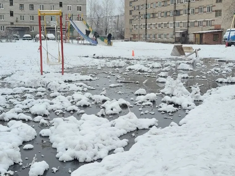 На детской площадке пермского города образовалось фекальное болото. Фото