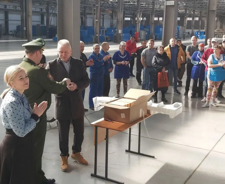 Передача закупленного обмундирования командиру одного из батальонов прошла на коллективном собрании. На мероприятие пришло более 250 человек. Мухометьярова уточнила, что обратилась за помощью на завод в феврале.