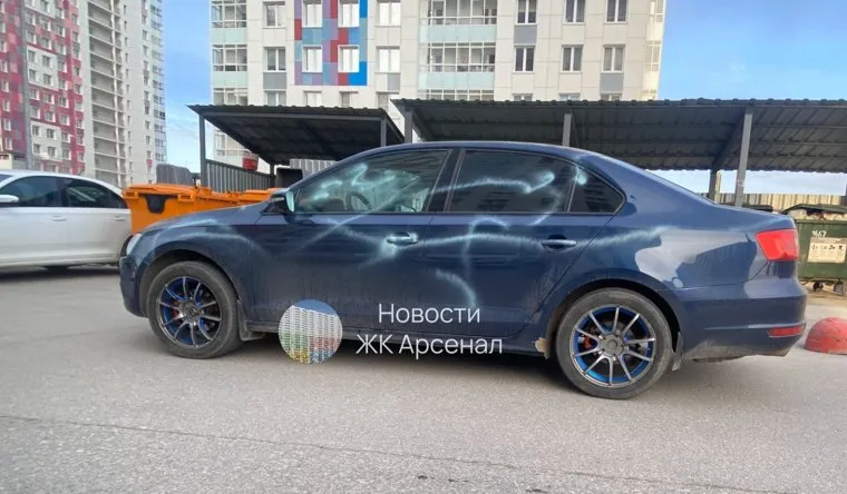 В Перми в ночь на 17 апреля кто-то разрисовал автомобили в ЖК «Арсенал» краской из баллончика. Об этом сообщили в группе «Новости ЖК Арсенал / Пермь» в соцсети «ВКонтакте».