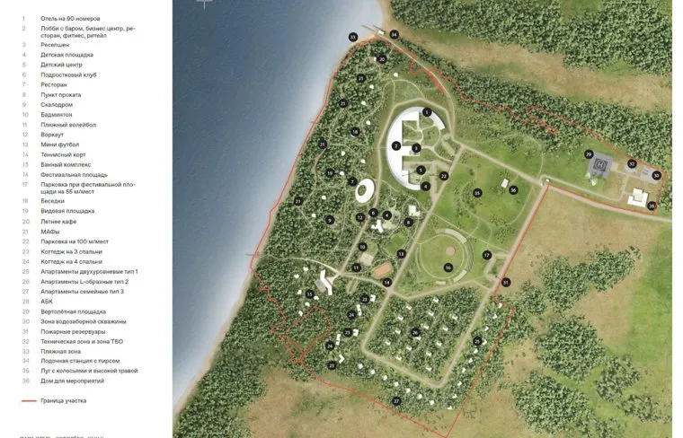 Уточняется, что на территории будет расположен сам отель, домики с апартаментами, спортивные площадки для футбола и волейбола, скалодром, пляж и вертолетная площадка. Проект планируют реализовать в рамках соглашения между корпорацией «Туризм.РФ» и правительством Пермского края. Открытие отеля назначено на третий квартал 2026 года.