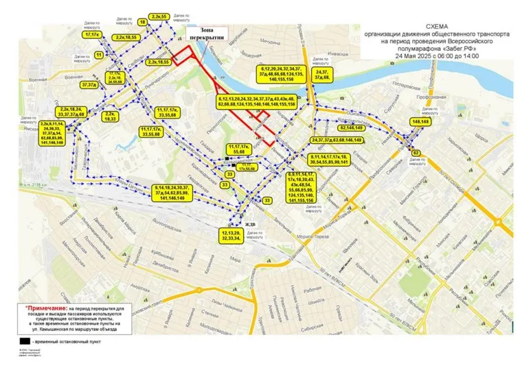 24 мая в Тюмени с 6:00 до 14:00 будет ограничено движение транспорта из-за проведения Всероссийского полумарафона. Об этом сообщает городская администрация.
