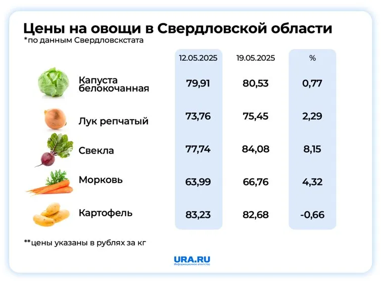 Цены на свеклу и другие овощи выросли в Свердловской области. Инфографика