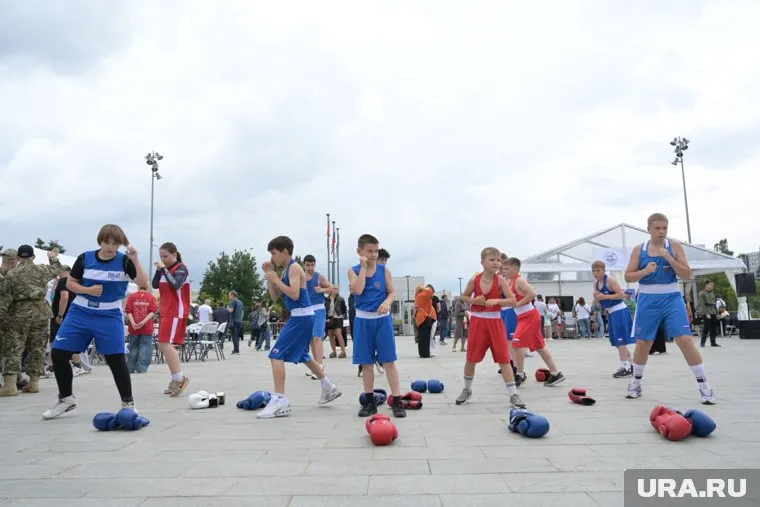 15:02 Федерация бокса Пермского края тоже разметила свою зону в фестивальном городке. Там тренируются взрослые и дети.