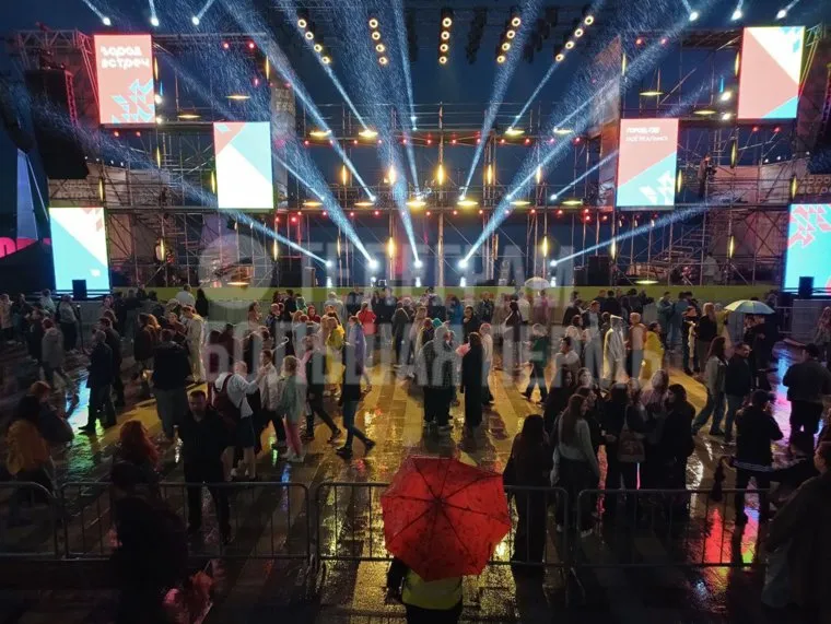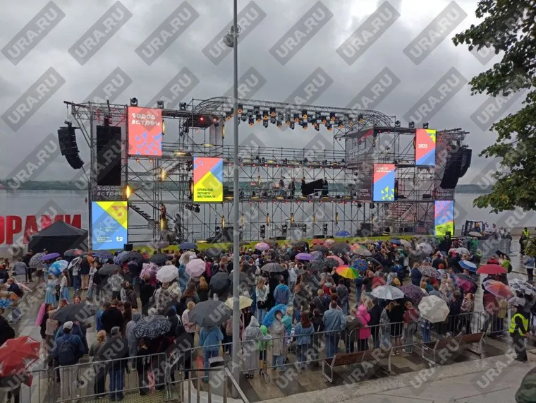 16:38 Пермяки ждут выступление Люси Чеботиной на эспланаде. И даже дождь их не останавливает. А пока певица не вышла на сцену, публику развлекают другие артисты.