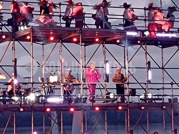 22:56 На набережной идет дождь. Концерт Евы Польны продолжается. Выступление сопровождается хореографией маленьких танцовщиц.