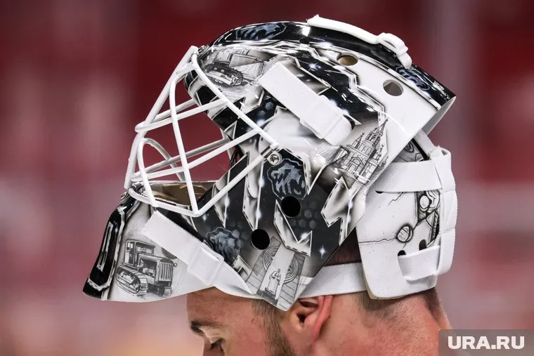 Голкипер челябинского «Трактора» показал шлем с куполами и известным физиком. Фото
