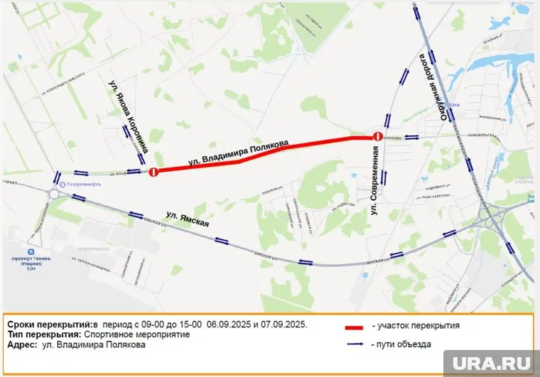 «В связи с проведением спортивного мероприятия 6 и 7 сентября в период с 09 до 15 часов планируется прекращение движения на автомобильной дороге по улице Владимира Полякова. Машины не смогут проехать на участке от Современной до Якова Коровина», — пояснили в мэрии.