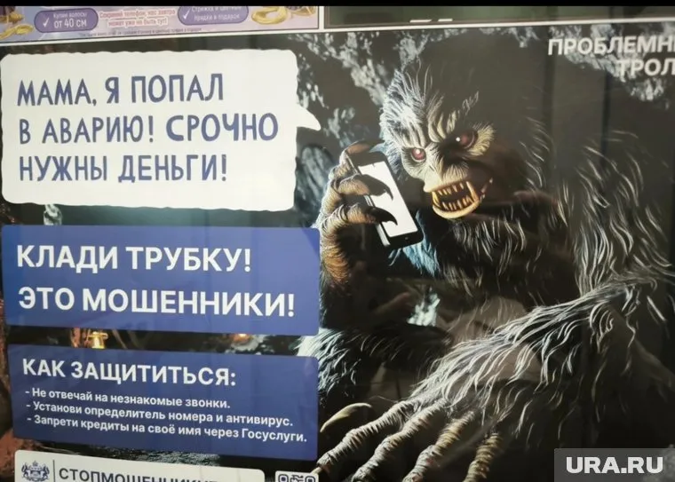 Жители Тюмени пожаловались на социальную рекламу о мошенниках с изображением монстра, размещенную в лифтах жилых домов. Люди обеспокоены, что пугающая иллюстрация может напугать маленьких детей. Об этом сообщили пользователи группы «ЧС Тюмень» во «ВКонтакте».