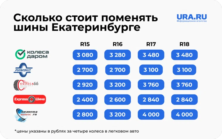 Сколько стоит поменять шины в Екатеринбурге. Инфографика