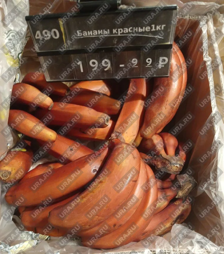 «Бананы красные. Один килограмм — 199,99 рубля», — сказано на ценнике.