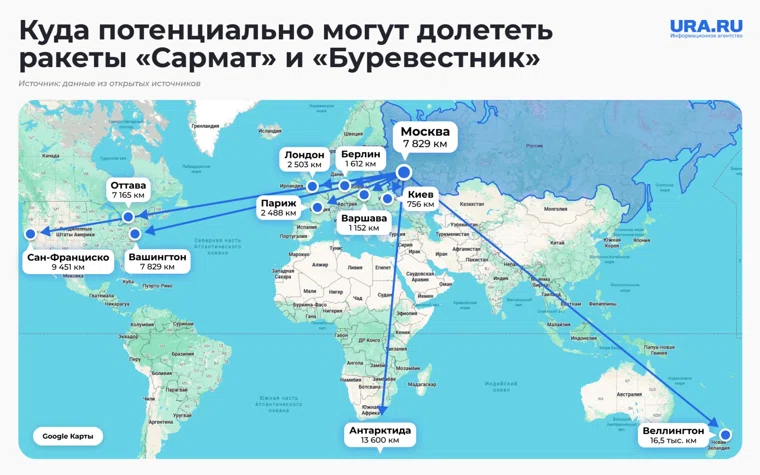 Куда долетят «Сармат» и «Буревестник»: карта поражения