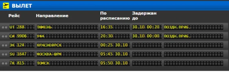 Скриншот онлайн‑табло с сайта аэропорта Нижневартовска