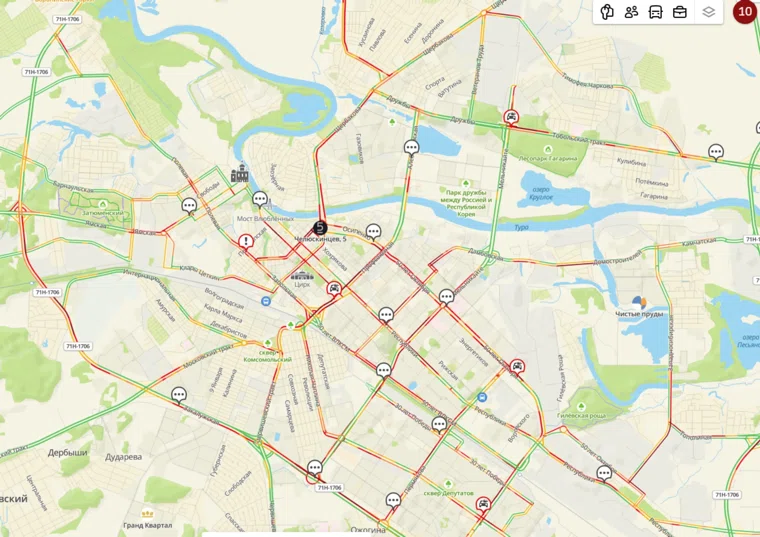 В Тюмени вечером 5 ноября пробки достигли десяти баллов. Такая информация указана на сайте сервиса 2ГИС.