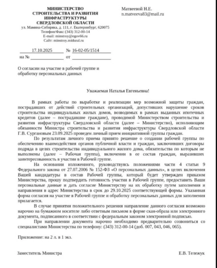 Свердловчане, обманутые застройщиком, обратились к Путину и Паслеру