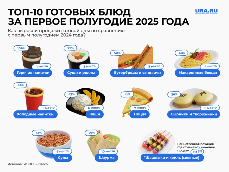 Горячие напитки заняли первое место по росту продаж в сегменте готовой еды за первое полугодие 2025 года