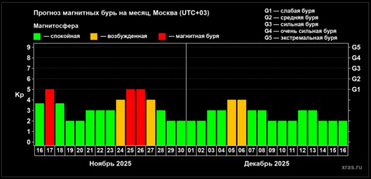 Прогноз магнитной бури 17 ноября 2025