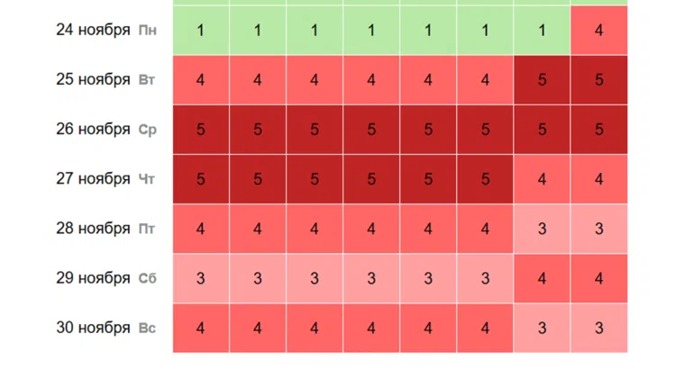 Согласно прогнозу, буря придет вечером 24 ноября (понедельник). Активность будет держаться на одном уровне и закончится лишь в начале декабря. Сильнее всего буря будет ощущаться 26 и 27 ноября.